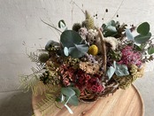 敬老の日花かご〜カラフルドライフラワーのアレンジメント