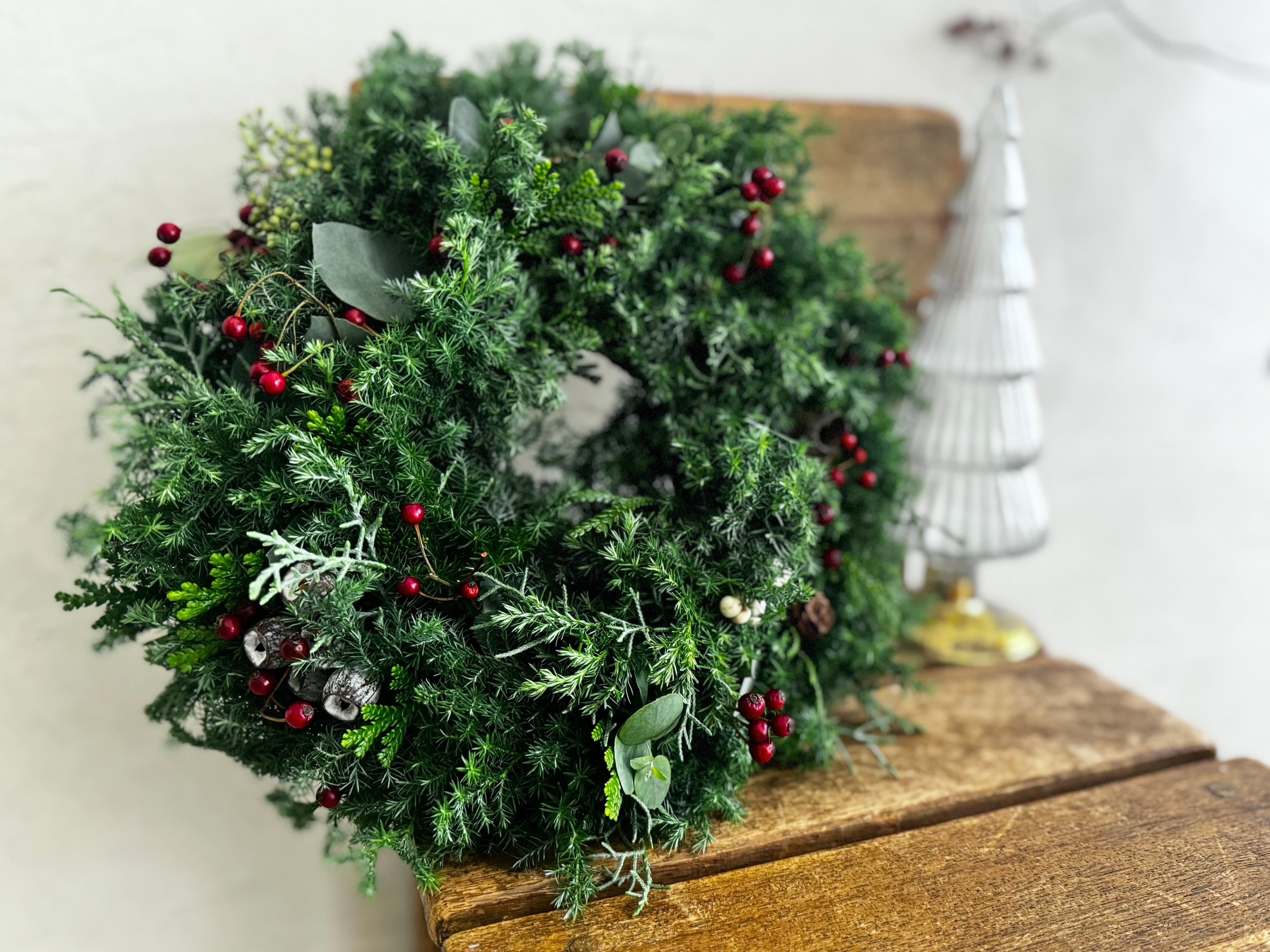 ユーカリと野バラの実が可愛い、クリスマスリース♡